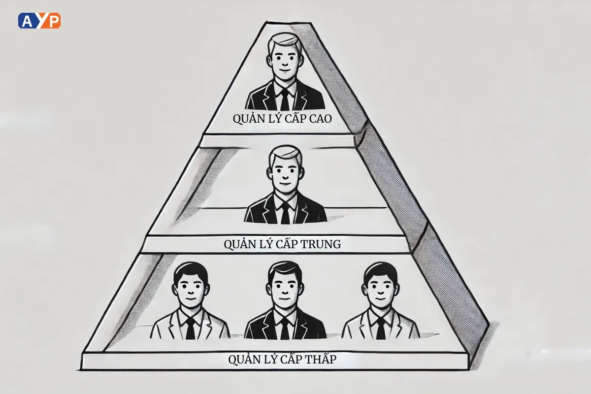 Cấp trung: Triển khai các chiến lược từ cấp cao, giám sát và điều phối hoạt động nhóm.