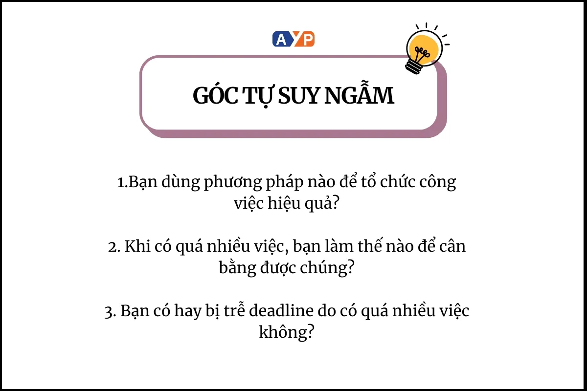 Ưu tiên công việc quan trọng: Tập trung vào nhiệm vụ chính để tối ưu hiệu suất.