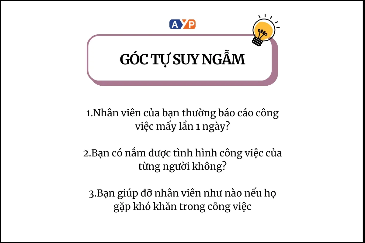 Giải quyết vấn đề tại chỗ: Xử lý các vấn đề nhỏ ngay lập tức để tránh ảnh hưởng đến công việc chung.
