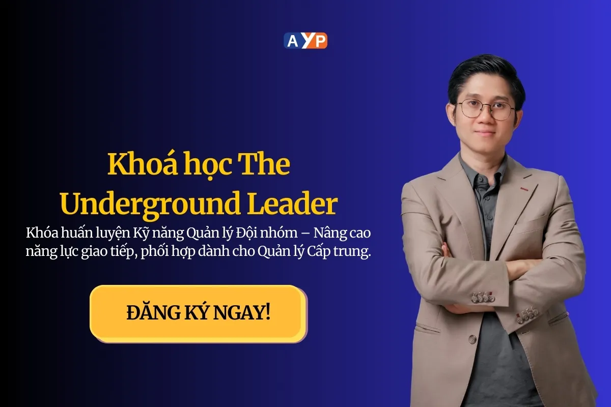 Để rèn luyện và phát triển những kỹ năng này, khóa học Underground Leader của anh Huỳnh Duy Khương là lựa chọn phù hợp dành cho Quản lý cấp trung muốn nâng cấp năng lực phối hợp đội nhóm.. Khóa học sẽ giúp bạn nắm bắt được cách quản lý hiệu quả và biết cách dẫn dắt con người, từ đó trở thành một nhà lãnh đạo thực thụ trong tổ chức của mình.